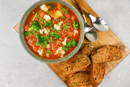Voor de inwendige mens zal gezorgd worden (linzensoep, brood met diverse